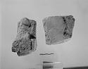 | Description: | Broken at all edges. Reused. On one side the background has been picked away to depth of about 0.006m. around the outline of a head in profile, which is short-haired and beardless, the features only slightly worked out; top of shoulder included, cut off in straight line below. Position of eye marked by a shallow chipping; interior surface otherwise level and covered uniformly with tooth chisel marks. Other side curves outward toward bottom (with reference to head). Lower part (band about 0.04m. wide) finely finished. Above this, surface has been carefully picked away. Marble has a curious grayish color, but rust stained like Pentelic marble. (Rust stain characteristic throughout the cistern.) Large grained marble. Cf. Hesperia Suppl. 4 (1940), p. 142, fig. 107. More fragments in Box 88 from the same section. | |