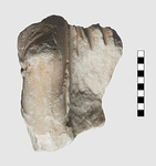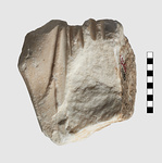 | Description: | Part of the leg, slightly bent at the knee, of a draped figure. Parian marble. | |