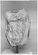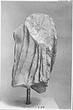 | Description: | Broken at hips and on left shoulder; the thin clinging drapery is chipped. Right arm made separately: two dowel holes for attachment in rough picked surface at right shoulder. At neck, coarsely picked socket for setting in head. Slight graceful figure, about life-size. Over the thin sleeved chiton (two buttons preserved on right shoulder) was worn a himation of which only the folds at the left side, and across the back, where it is drawn diagonally, from left shoulder to right hip, remain. Pentelic marble. | |