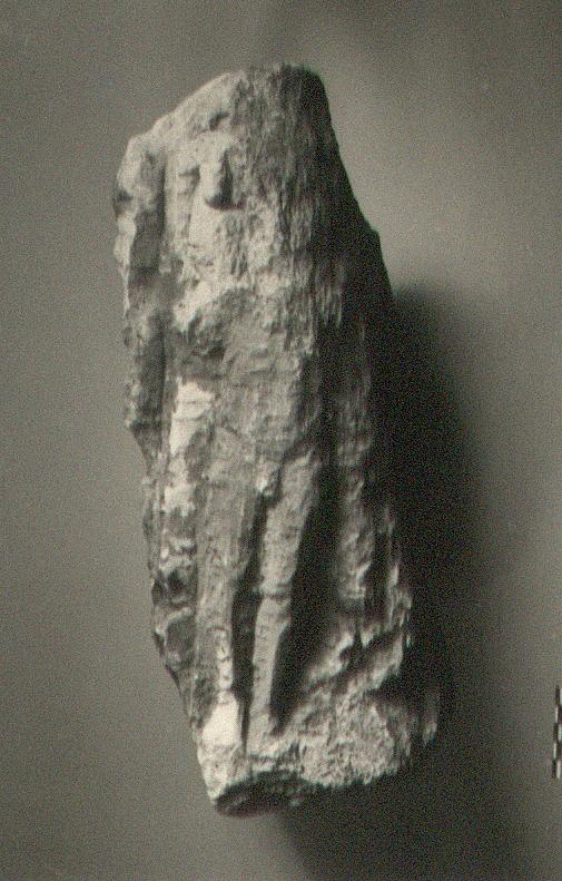 | Description: | Rough blocking, rather inept, of figure carrying an animal, perhaps a ram, on his shoulders, Kriophoros (?). Head of man and part of animal broken away. Unfinished. Poros. | |