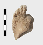 | Description: | Broken off at instep. Big toe broken off. Heavily weathered. Marble, weathering and style resemble fragments from the Temple of Ares, but scale a little smaller. Perhaps a child's foot. Pentelic marble. | |