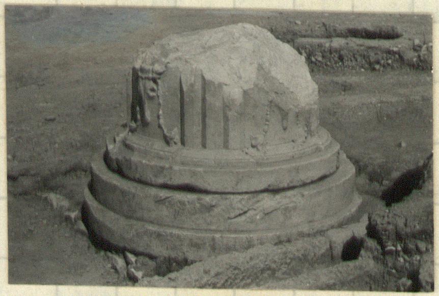 | Dimensions: | P.H. (altar) 0.69; H. (plinth) 0.25, (lower fascia of plinth) 0.10, (upper fascia of plinth) o.15, (lower fascia of altar) 0.10, (upper fascia of altar) 0.03; Diam. (lower molding of plinth)1.445, (upper molding of plinth) 1.365, (lower part of altar) 1.20, (from femur of triglyph) 0.975 | |
