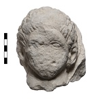 | Description: | Top of head to base of neck is preserved with wedge from background. Face very battered. Frontal, young man's head with short locks brushed forward. Large thick ears with drilled centers; drilled corners of eyes and mouth; banded eyelids; rasped surface of flesh. Roman. Pentelic marble. | |