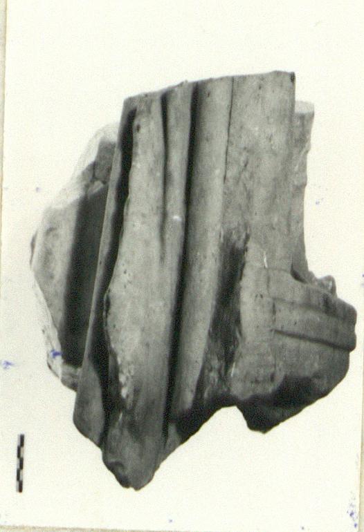 | Description: | Mended from two joining fragments. Very large folds of hanging himation from proper left side of a figure, and the top of a book box, also larger than usual. Folds finished smooth except for heavy rasping in deep folds and on back of statue. "Pie-crust" edging on vertical edge and incised line along hem. Pentelic marble. | |