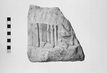| Description: | Broken at top and right side; upper surface of front shorn off at an angle; left side preserved; back rough-picked. Two standing females (?). At left, figure facing right: two long straight folds of garment and right foot. At right side, figure facing front: left foot with folds of garment across ankle; standing on plinth. Pentelic marble. | |