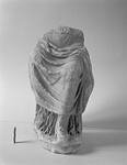 The figure wears a thin chiton with overhang and has an himation across the knees. She is seated, with the left foot advanced, upon a cushioned seat, which is hollowed out at the back beneath and rests on a low plinth.