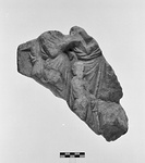 | Description: | Bit of left side preserved. Back rough-picked. Broken along a diagonal at bottom and right sides. Figures in relief, family of worshippers. At left is a female (?) wrapped in a himation; another figure is seen behind her. In front of her stands a male figure. Lower and on a smaller scale is a figure, probably a child. All face right. Surface very battered. Pentelic marble. | |
