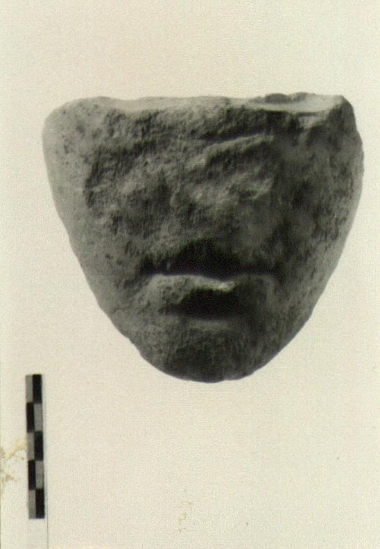 | Description: | Slice of lower half of face with nose broken off and back broken away. Oval shape of jaw line, softly modeled lips of slightly open mouth. Top surface shows hollowed area for insertion of eyes. Parian marble. | |