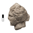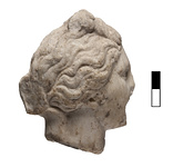 Description:   Small head, broken off at base of neck. Tip of nose, mouth and front of chin missing, and chips from the hair at the back.