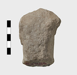 Description:   Fragmentary torso, broken at neck and waist, arms broken at shoulders. Front extremely weathered. Back has original surface.