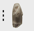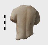 | Description: | Broken across neck and waist. Right shoulder chipped. Both arms broken above elbows. Two short locks of hair on shoulders. Right shoulder lowered and right arm forward as in type of Knidian Aphrodite. Parian marble. Cf. Hesperia 81 (2012), p. 338, n. 152. | |
