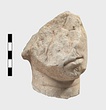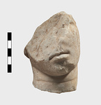 | Description: | Small head, from the Altar of Ares series (?), broken at base of neck and at top, back and right side of head; left cheek, mouth and chin preserved. Head tilted slightly toward the right. Pentelic marble. Cf. Hesperia 21 (1952), p. 94. Drilled for setting on base 1951. | |
