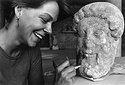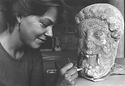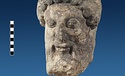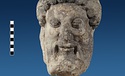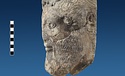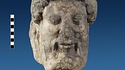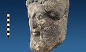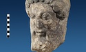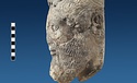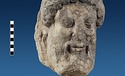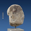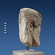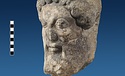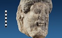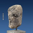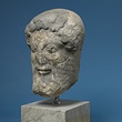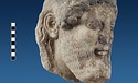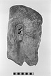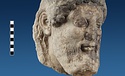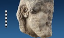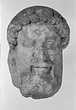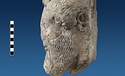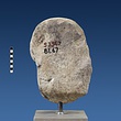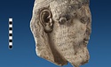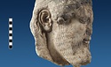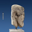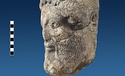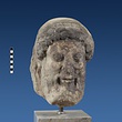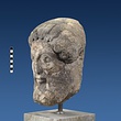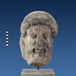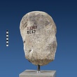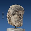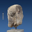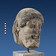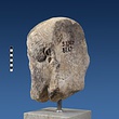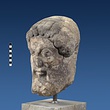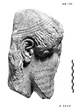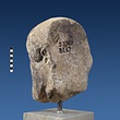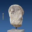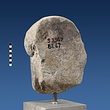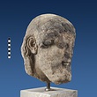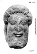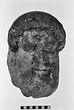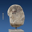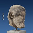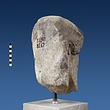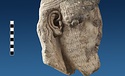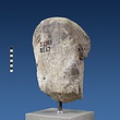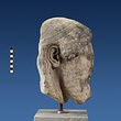 | Description: | Broken at neck. Back of head, including part of one ear; appears to have been cut to form flat surface. Tip of beard and nose missing. Very worn. Heavy encrustation on hair above forehead, nothing on re-cut back. Long hair combed forward and ending in curls on front; fillet of three flat ridges around top of head; mustache and stylized beard. Rounded protruding eyes, deep set in corners. Ear unusually large. White marble. | |