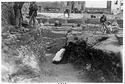 Context:   In trench above water channel of main drain. It lay in the loose, black filling of the trench, resting on a layer of black mud, 0.03m. thick, which overlay the water-washed filling of the water channel proper. Found front down, lying almost lengthwise of the drain, head to the S.W.