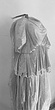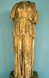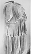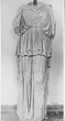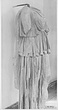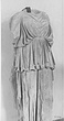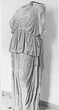 The figure wears a heavy chiton girded at the waist over a long overfold, beneath the lower edge of which appears a little of the kolpos. The under sleeves are in a thinner material, buttoned along the arm. The hair hangs in a heavy mass down the back.