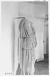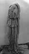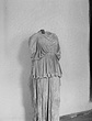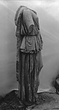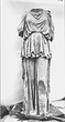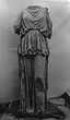 Description:   The head, set into a rough picked socket, now missing; arms missing from elbows; the left knee and the front of the leg below it broken away; the drapery much chipped, especially at the sides.