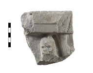 Description:   Votive relief fragment. Broken on all sides except for preserved portion of architrave; abraded surfaces.