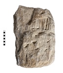 | Description: | Broken all around; rough-picked in front below the relief, which shows the lower part of a female figure, wearing chiton and himation. Pentelic marble. | |