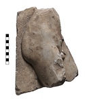 | Description: | Part of the left side, dressed with toothed chisel, and the rough-picked back, preserved; otherwise broken. The relief shows the mid-parts of a nude youth, facing right and bending forward. The body is broken away above the waist and above the knees. Marble. | |