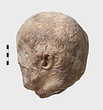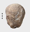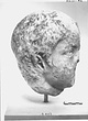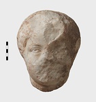 | Description: | The proper left side of the face is split off, its surface damaged. Right eye, cheek and forehead preserved. Eyeball pierced. A wreath on his head. Pentelic marble. Drilled for setting on base in June 1950. | |