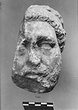 | Description: | Back and top of head, and most of proper right side of face and chin, are missing. The nose is battered. The hair is disposed in small, short locks, bound by a filet. The eyes are deep sunken at the inner corners and the gaze is upturned with an intensity of expression accentuated by the swollen character of the lower lids. The head is turned three-quarters to the left; the mustache and beard are clipped short. Pentelic marble. | |