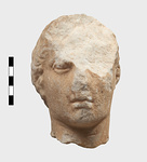 | Description: | Broken off at neck; upper front part missing, including proper left eye; nose damaged. Round head with impressionistic hair not indicated at the nape of the neck; oval face with heavy eyelids; small mouth slightly turned down at the corners. Pentelic marble. Cf. Altar of Ares series. Cf. Hesperia 21 (1952), p. 94. | |