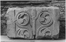 | Description: | Slab from a Byzantine iconostasis. About one half preserved. Marble. | |