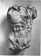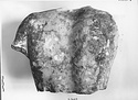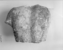 | Description: | a) The torso from just above the waist to the shoulder is preserved. The right arm and shoulder are missing; the left shoulder and part of the upper arm is intact. The head is missing, but the beginning of the curve of the neck remains on the right. The break shows clearly that the head was bent forward. Except for a break on the left side of the chest, the original surface of the fragment is intact. b) Lower abdomen and hips, battered. Pick-marks on front. Mortar. Pentelic marble. | |