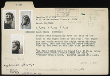 Description:   Broken away diagonally from the back of the head to the right side of the face. The right ear and curls around the right cheek missing. The nose, left eye and end of beard chipped. Part of the neck on the left side preserved.