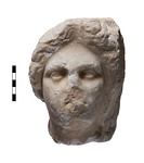 Description:   Broken from a relief, probably from a grave stele; the head and part of the background surface only preserved. Nose and chin broken.