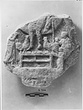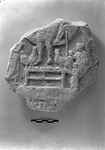 | Description: | The bottom preserved, and possibly part of the back. Small tongue for insertion into base. In low relief, a table with a row of eggs (?) on it. A cock stands at either side, facing in. On each side of the table, a draped male figure, and at the right a child, its arms outstretched to the table. Above, a larger pair of legs floats against a circular object; a stick (?) at the right. Pentelic marble. | |