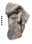 | Description: | Head and feet missing; part of the relief background preserved at the left of the figure. Back rough-picked, sides broken. The figure is wrapped in a Hymettian, its folds held at the breast by the right hand and at the side by the left hand. She is standing with the weight on the left leg, the right knee bent. Pentelic marble. With I 4179 and S 762-770 (ΣΑ 192-210) were brought in a number of other small fragments of sculpture, stored among the unnumbered marbles (ΣΑ). | |