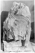 | Description: | Badly damaged draped figure seated on a throne (Kybele? Philosopher ?). The throne is broken at top, left side and front of bottom. The head, shoulders, arms (except left forearm) and legs from the knees down are also missing. The figure is wrapped in a heavy cloak one end of which is thrown across its legs in heavy folds. The left hand rested in the lap, the right seems to have been raised (possibly holding a staff). The throne has a high curved back and no arms. Its sides, which are solid to the ground, end in the foreparts of winged lions. Cf. S 930. Pentelic marble. Possibly a male figure: cf. Richter (1929), Sculpture and Sculptors of the Greeks, fig. 333 (fig. 350 in forth edition 1970), portrait statue in the British Museum, and fig. 445 (fig. 356 in forth edition 1970), statue signed by Zeuxis in the Metropolitan Museum. | |