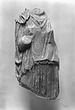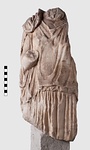 | Description: | Missing: the head, the right hand and lower arms, the legs from above the knees, and all of the left side. Preserved surface somewhat eaten away, especially at the front. Standing female figure, probably from a relief, about half life-size. She wears a Doric chiton, with overfold and apoptygma, and over it at the back a cloak of which one end falls over her right shoulder. The right arm is bent at the elbow, and extended as if to hold something. Flesh surface at neck carefully polished. Drapery carefully and elaborately rendered. Altar of Ares series. Pentelic marble. | |