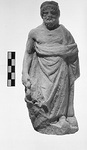 Bearded standing figure, draped except for chest and right arm. Right hand rests on what was probably intended for a column, with at serpent climbing it; head preserved.