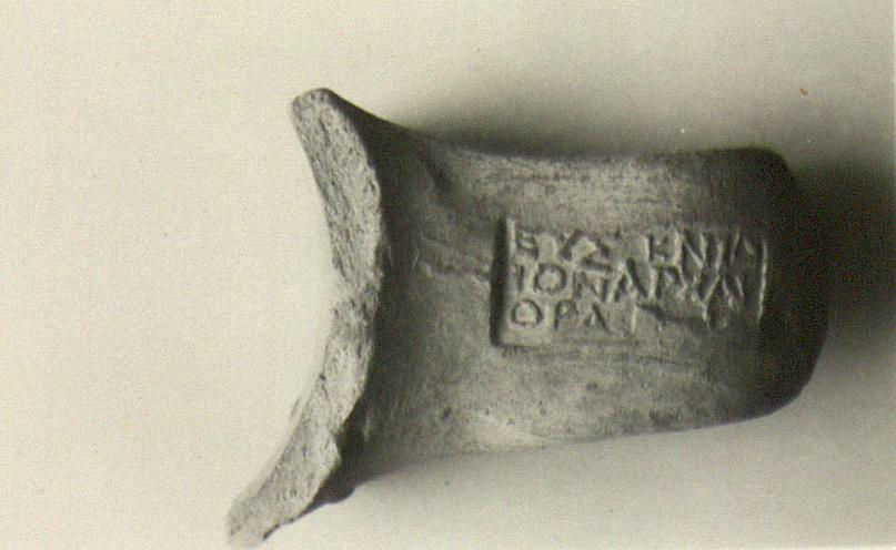 | Description: | Typical stocky handle. Impression incomplete above and below; herm, head right. Cf. Dumont (1872), p. 268, no. 137. | |