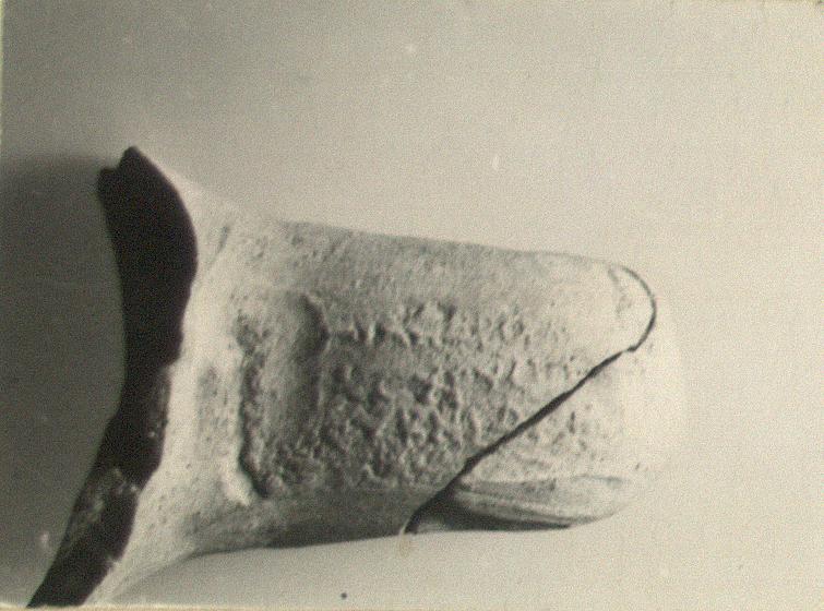 | Description: | Non-joining pair of handles; one with about half of the rim preserved. Stamped on both handles; indistinct; herm; sun. | |