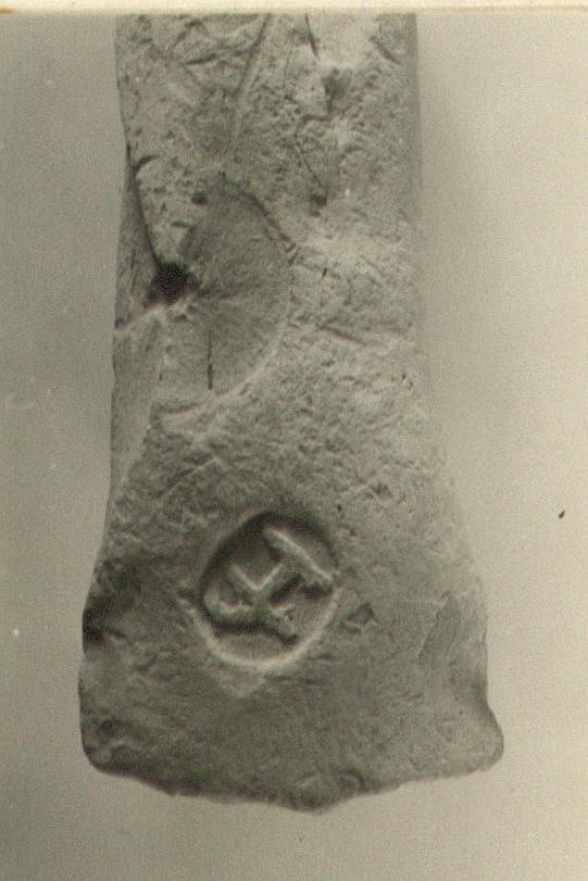 | Description: | Heavy handle. Buff clay with light buff slip. Surface: 7.5 YR 7/4-pink; break: 5YR 7/6-reddish-yellow. Stamped at base of handle. | |