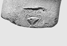 | Description: | Over a quarter of rim preserved (Pridik's typical profile, but much chipped). Clay a bright orange-red with pale buff core; red stain. Outer (lower) hapf of the impression broken away. Vase with high swung handles to within spreading rim; lower part of body broken away. Cf. Hesperia 3 (1934), p. 315. | |