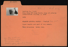 Description:   Upper handle and part of rim preserved.