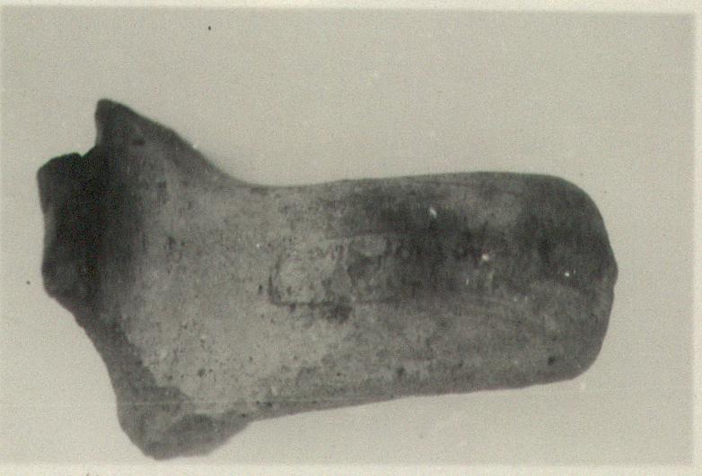 | Description: | Broad, level, typical curve. Coarse clay, unlevigated, pinkish-buff, somewhat micaceous; light slip. Impression incomplete lower right; much worn. | |
