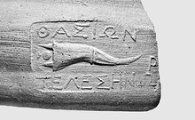 | Writing: | Θασίων cornucopia Τελεσήνω | ρ | |