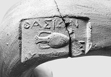 | Writing: | Θασίων vaseII Λυσα̣γ̣[όρα] | ς (Σ barred) | |