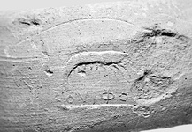 | Description: | Most of a long tall handle, oval in section. Oranging-buff miceaceous clay. Scorpion; inverted. Early Thasian. | |