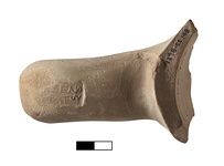 | Description: | Rising shape. Fine clay, light red, yellow near surface; cream slip with traces of red paint. Impression worn away at left end. | |