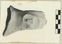 | Description: | Broken at both ends; small part of amphora preserved. Orange fabric. Boukranion surrounded by inscription. | |