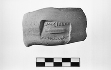 Rectangular stamp preserved; unguent bottle in relief in centre of stamp.