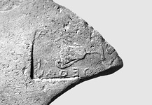 | Description: | Part from neck of amphora. Micaceous reddish-buff clay. Impression incomplete above, broken away to right. | |