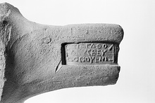 | Writing: | Ἐπὶ Ἀγαθο anch- κλεῦς Θευ or δοσίου Κνι( pt up (Σ lunate) | |