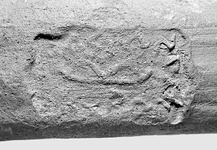 | Description: | Russet buff clay, gray core. Rectangular stamp; emblem: a bow. | |